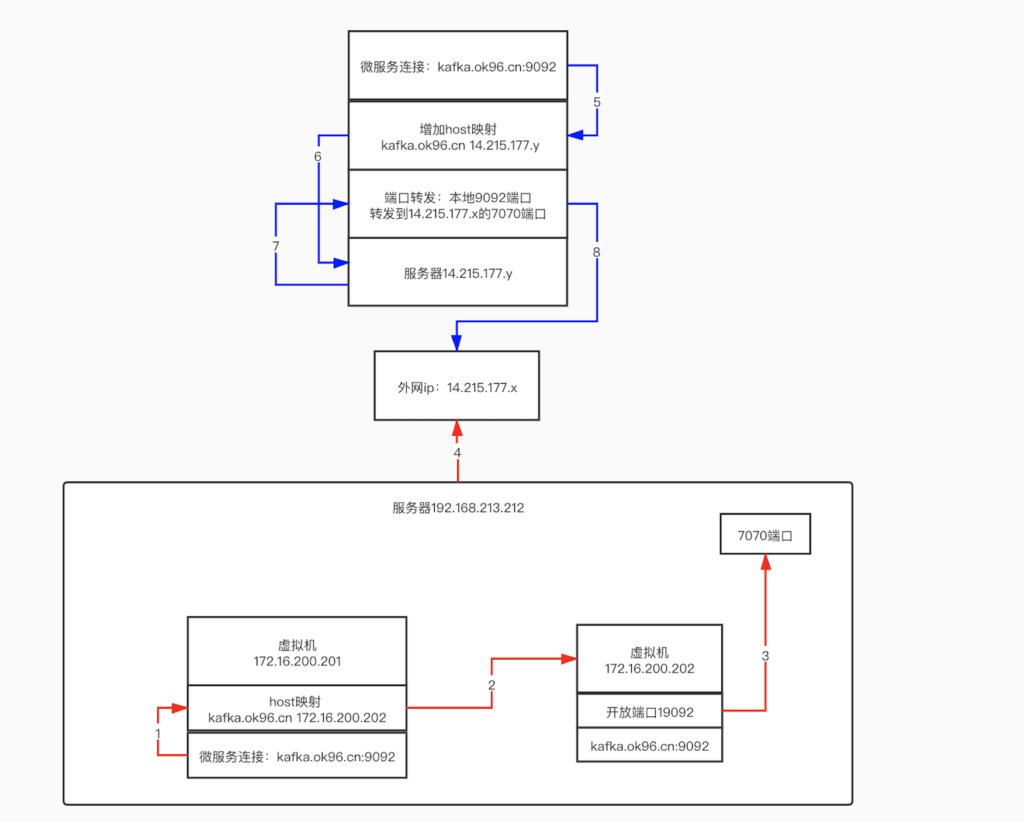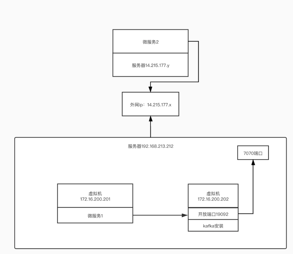 - 在外网14.215.177.y服务器上的微服务需要连接kafka