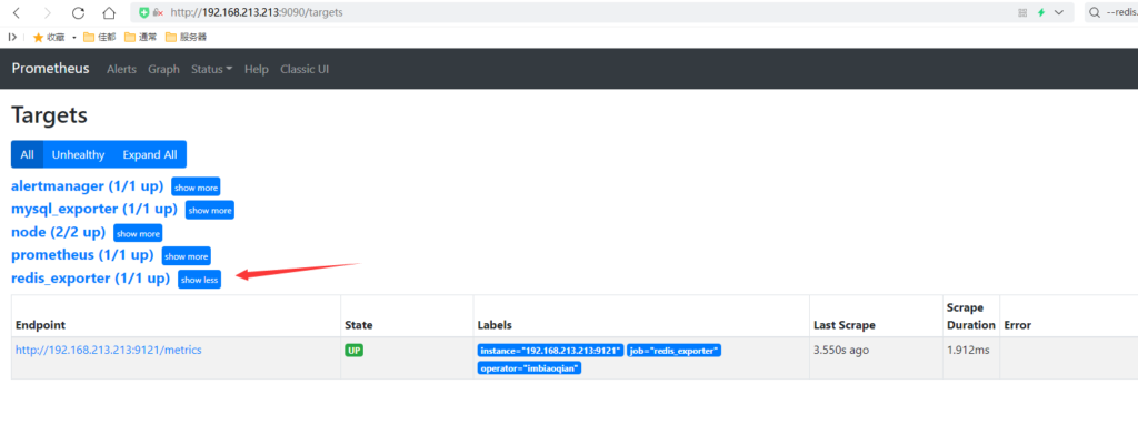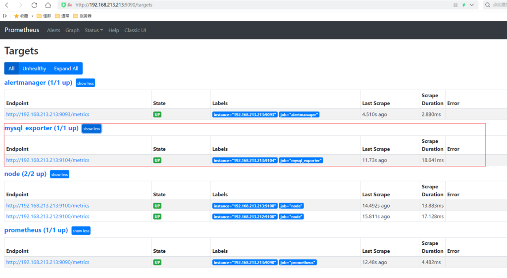 访问Prometheus: http://IP:9090/targets