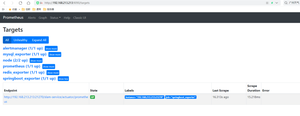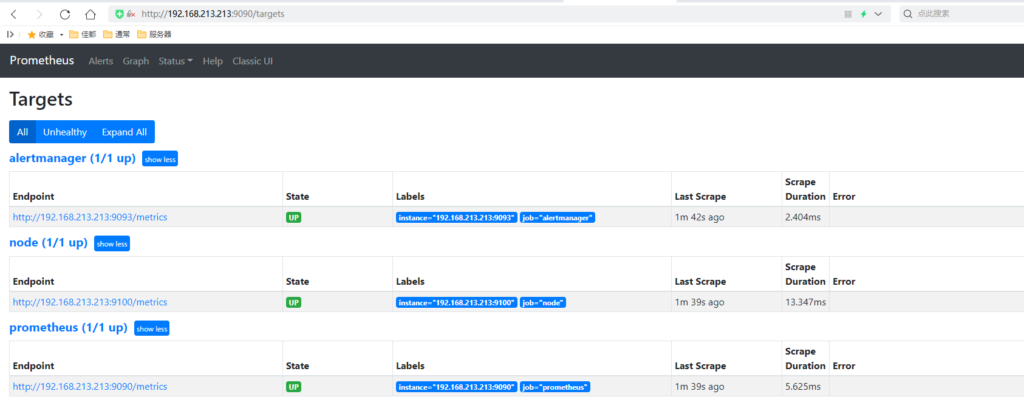 虚拟机IP:192.168.213.213,本次部署暂不对Alertmanager和dingtalk进行告警测试