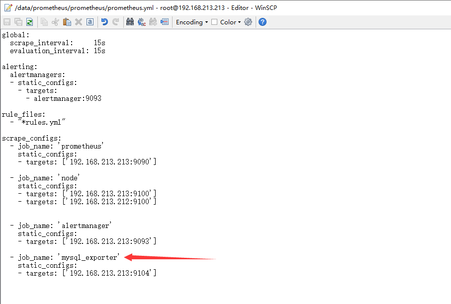 prometheus.yml,监控exporter在213中