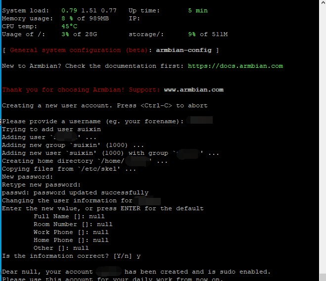 这时候把玩客云主板U盘插上,再通上电,会在 putty 窗口里看到很多数据,稍等一会,就可以看到系统正常启动了,此时启动的系统是u盘上的系统。